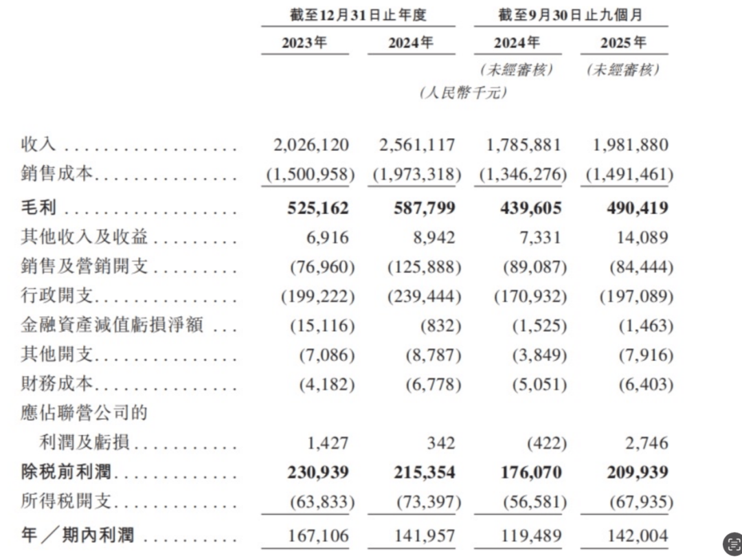 2025年前三季度营收19.82亿元,净利润1.42亿元,毛利4.90亿元