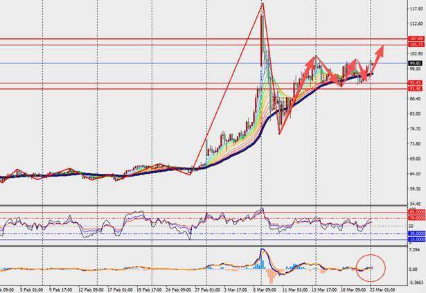 技术面:美元兑日元H4级别持续反弹,并在48日多空分界线上方运行。此外,MACD双线和量能柱在零轴附近缩量。鉴于中东冲突和能源价格相关的不确定性,日本央行下次行动的时机比以往更加不明朗。