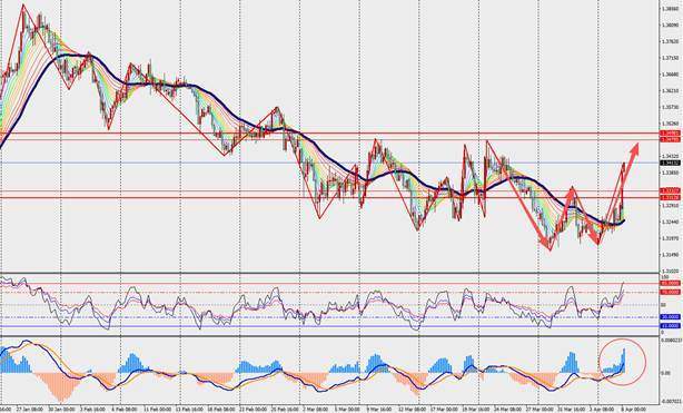 技术面:英镑兑美元H4级别大幅上涨,并在48日多空分界线上方运行。另一方面,MACD双线和量能柱在零轴附近扩张。随着能源价格再次成为通胀主导因素,英国央行内部政策分歧迅速扩大。3月会议中罕见的全票按兵不动很可能只是短暂共识。