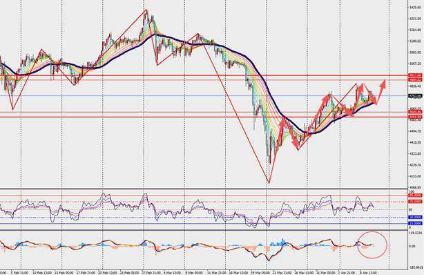 技术面:黄金H4级别震荡徘徊,并在48日多空分界线上方运行。另一方面,MACD双线和量能柱在零轴附近扩张。美元走软帮助黄金企稳,摩根士丹利预计金价二季度保持稳定、下半年反弹,并指出若美联储避免加息或冲突得到解决,将重新聚焦货币问题。