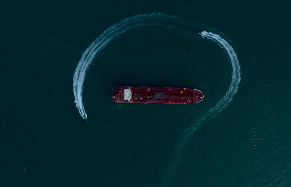 图为2019年7月21日,在霍尔木兹海峡附近水域,伊朗伊斯兰革命卫队船只在被扣押的一艘英国油轮周围游弋。新华社/伊朗学生通讯社