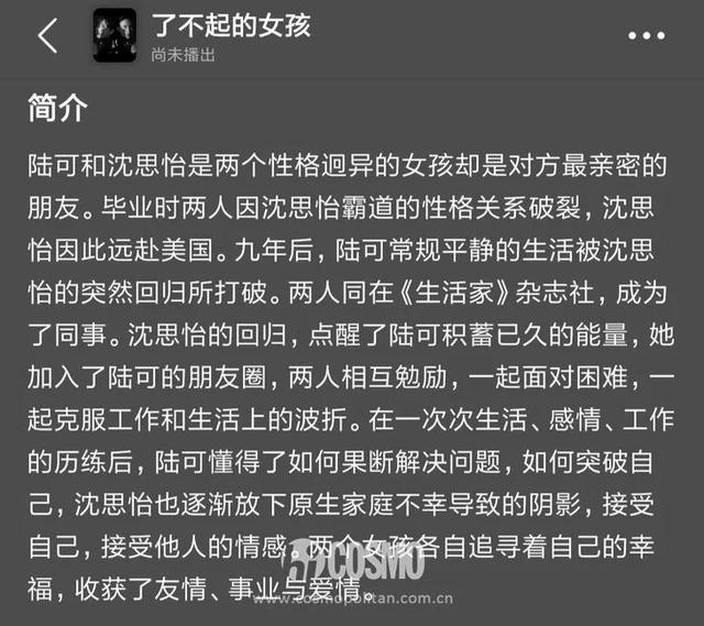 眼下,除了刘诗诗和倪妮合拍《流金岁月》以外,李一桐和金晨主演的《了不起的女孩》也即将开播了。看看剧情梗概,依然是属于女孩们的故事,关于男人,不占一席之地。